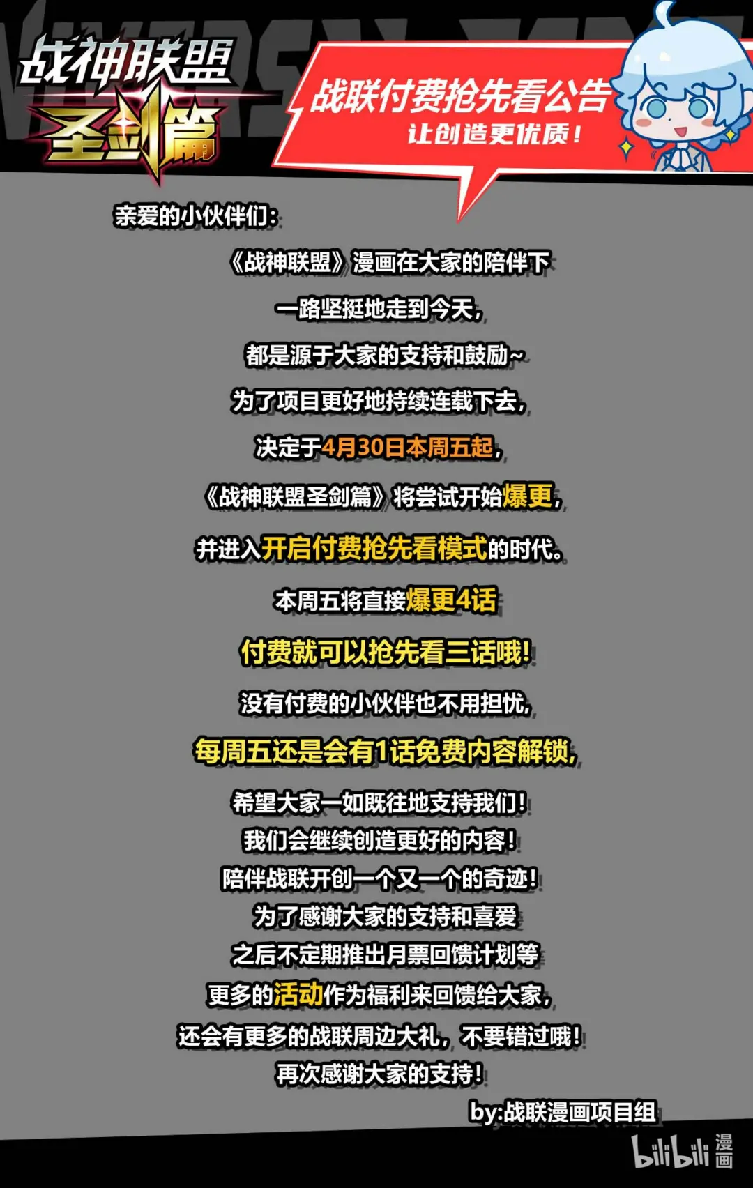 公告 战联付费抢先看通知